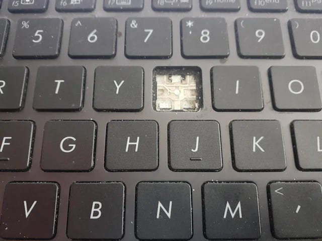 “And I don’t know what came over me. Call it rage, call it deep sadness, call it a gerbil in my britches—but I snapped. I reached down… and ripped the U key right off the keyboard.”