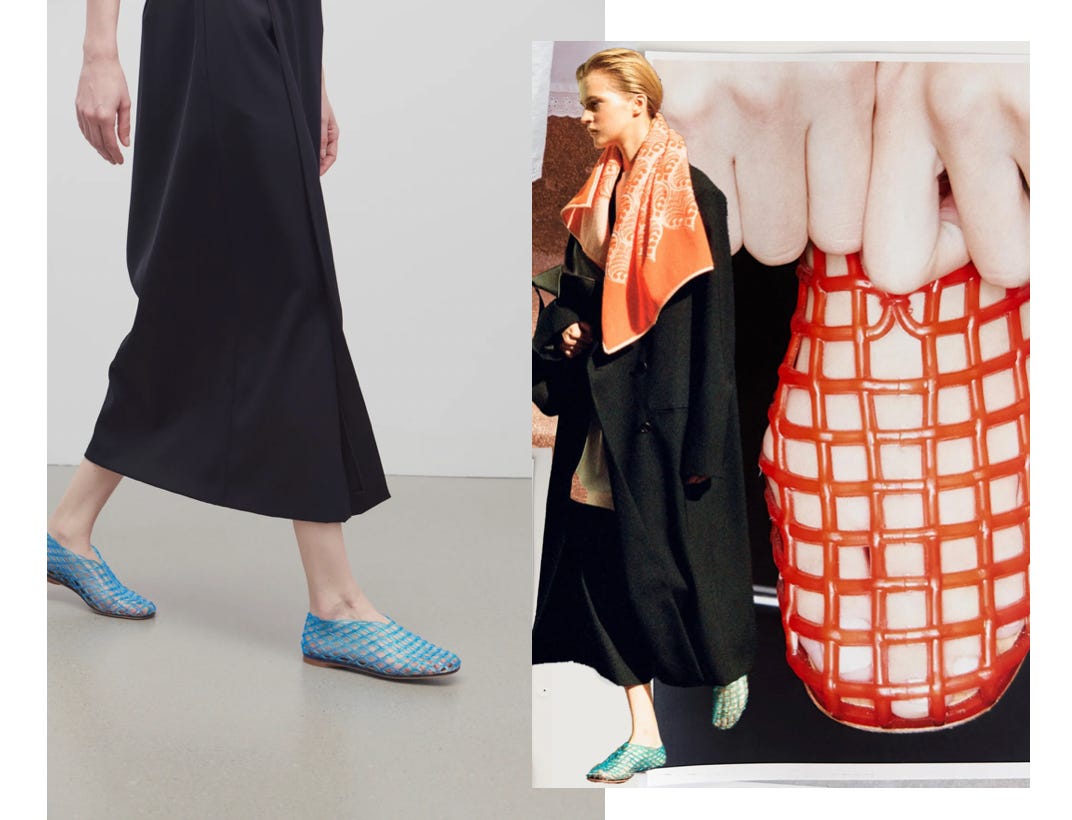 Then, a few months ago… and I hate to admit it, they got me! And they got me good. I’m a child of the 90s! You can’t dangle colorful jellies and expect me not to bite. What a throwback. This led me to their mesh flats and from there the can of worms opened. And while I still refuse to pay their prices (my mom bought our jellies from a drugstore), I do find myself using The Row as inspiration.
